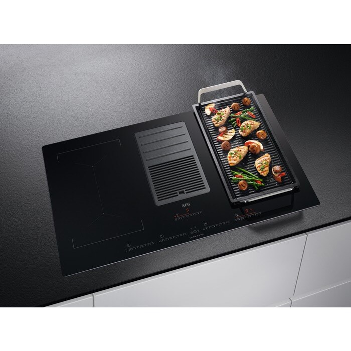 ComboHob® une la placa de inducción con un potente extractor. La ubicación de la campana ya no determinará el lugar donde instalar la placa. Experimenta la libertad ubicar tu cocina donde tú elijas con esta Vitrocerámica con extractor de AEG.